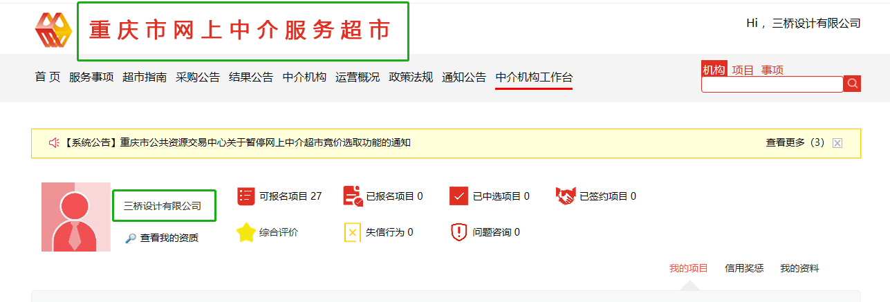 周一有客户需要在重庆市中介超市报名一个项目,于是我们很快进行了中介超市入驻。首先我们办理了一个手机CA,当天就提交资料当天就能使用,办理完成以后我们进行了入驻资料的提交,审核通过以后,公示两个工作日就入驻成功了。
